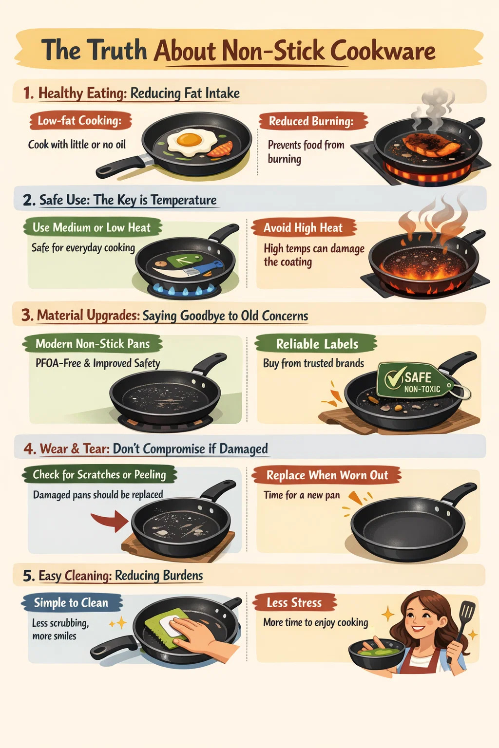 Czy naczynia kuchenne z powłoką nieprzywierającą jest dla ciebie dobre lub złe, nie można go po prostu podsumować jako „dobre” lub „złe”. Zależy to od Twoich nawyków kulinarnych, problemów zdrowotnych oraz sposobu użytkowania i konserwacji.