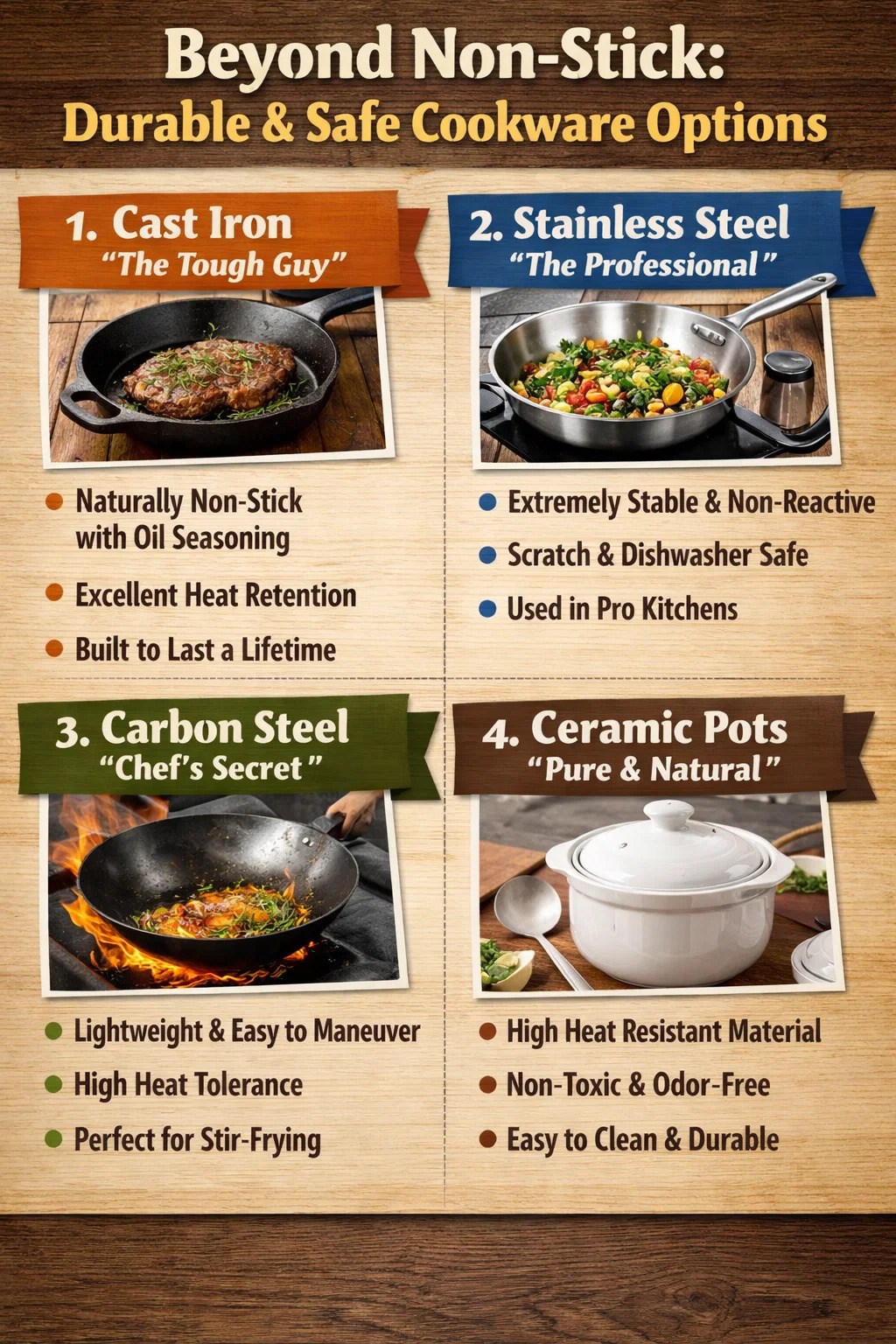 Choć nowoczesny naczynia kuchenne z powłoką nieprzywierającą jest bezpieczny w normalnych warunkach użytkowania. Jeśli szukasz naczyń kuchennych, które są całkowicie bezproblemowe, bez obaw o łuszczenie się powłoki lub problemy z wysoką temperaturą, rzeczywiście istnieje kilka solidniejszych i niezawodnych alternatyw.