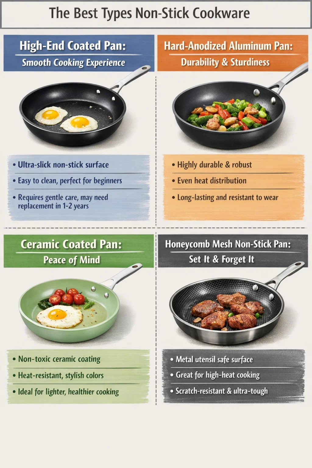 Wybieranie najlepszych naczynia kuchenne z powłoką nieprzywierającą nie polega na znalezieniu jednej „absolutnie najlepszej” opcji, ponieważ każdy ma inny styl gotowania. Najlepsza patelnia dla Ciebie to ta, która najlepiej odpowiada Twoim nawykom kulinarnym i preferencjom dotyczącym konserwacji.